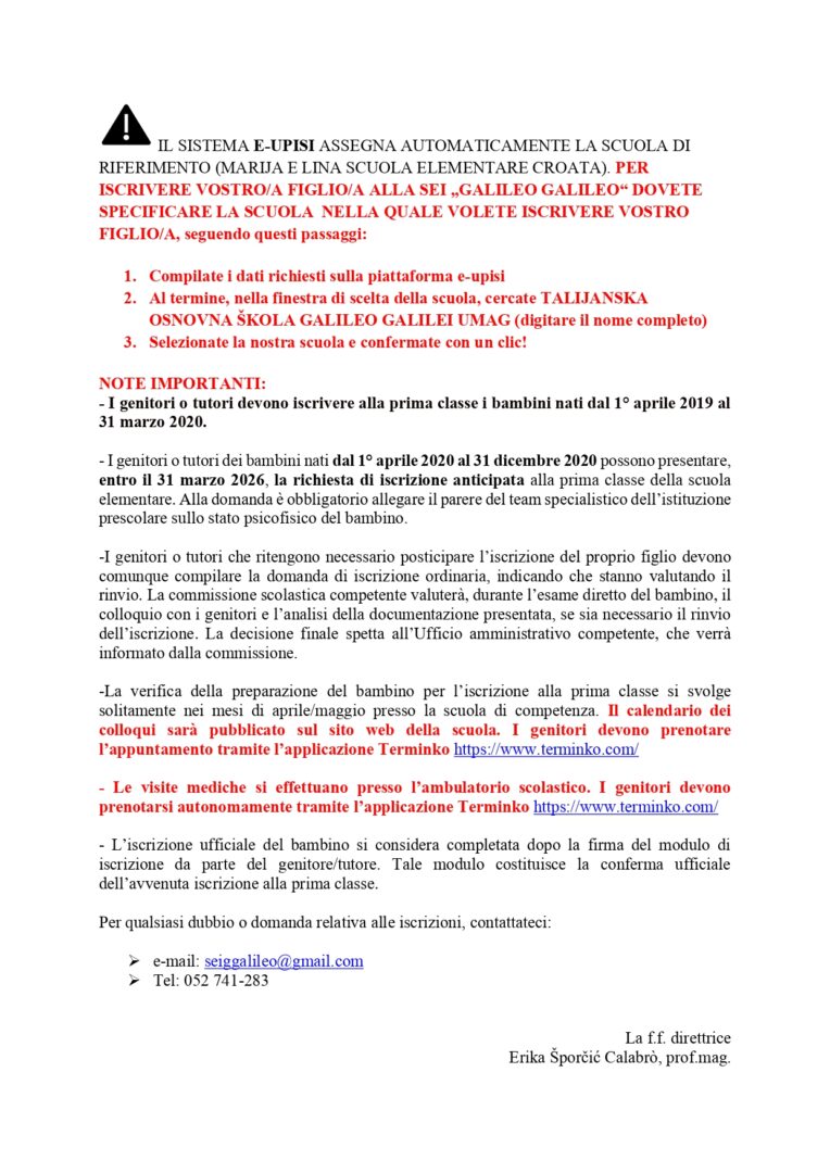 Concorso per la nomina del direttore/direttrice della scuola – Natječaj za imenovanje ravnatelja/ice škole